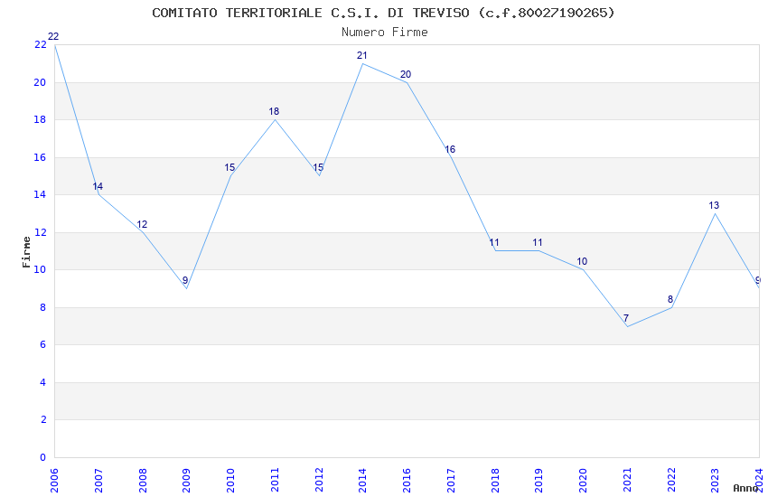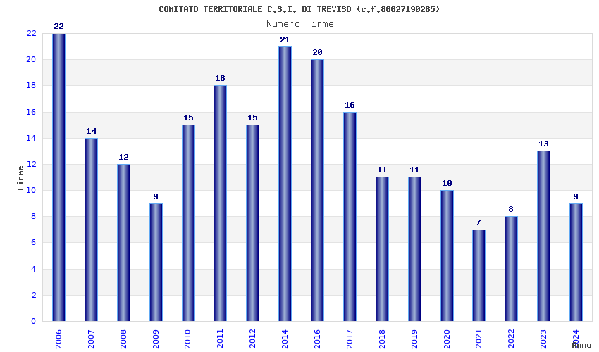 | Anno | Firme | Importi | Media | Naz. | Reg. | Prov. | Comu. |