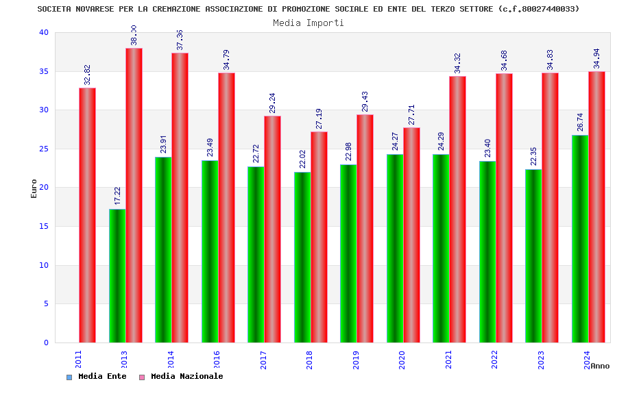 | Anno | Firme | Importi | Media | Naz. | Reg. | Prov. | Comu. |