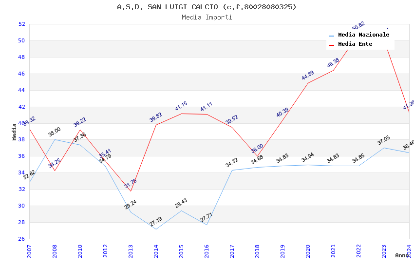 | Anno | Firme | Importi | Media | Naz. | Reg. | Prov. | Comu. |