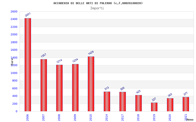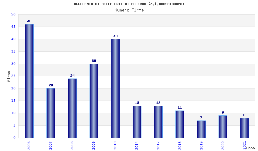 | Anno | Firme | Importi | Media | Naz. | Reg. | Prov. | Comu. |