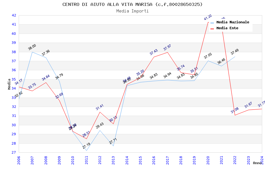 | Anno | Firme | Importi | Media | Naz. | Reg. | Prov. | Comu. |