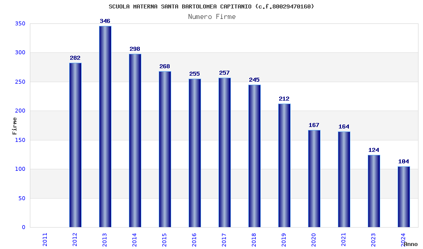 | Anno | Firme | Importi | Media | Naz. | Reg. | Prov. | Comu. |