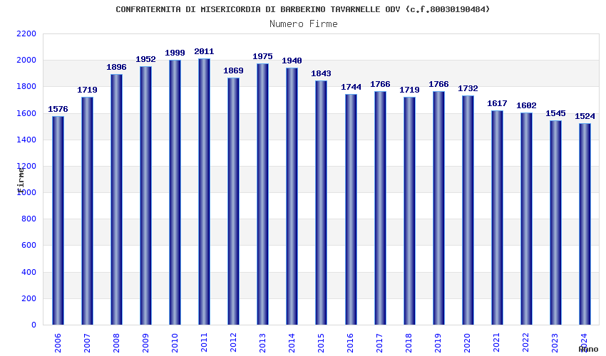 | Anno | Firme | Importi | Media | Naz. | Reg. | Prov. | Comu. |