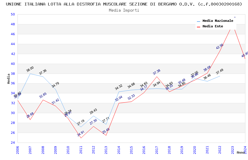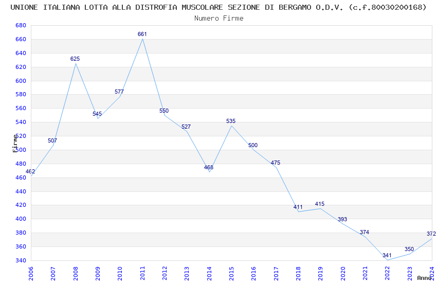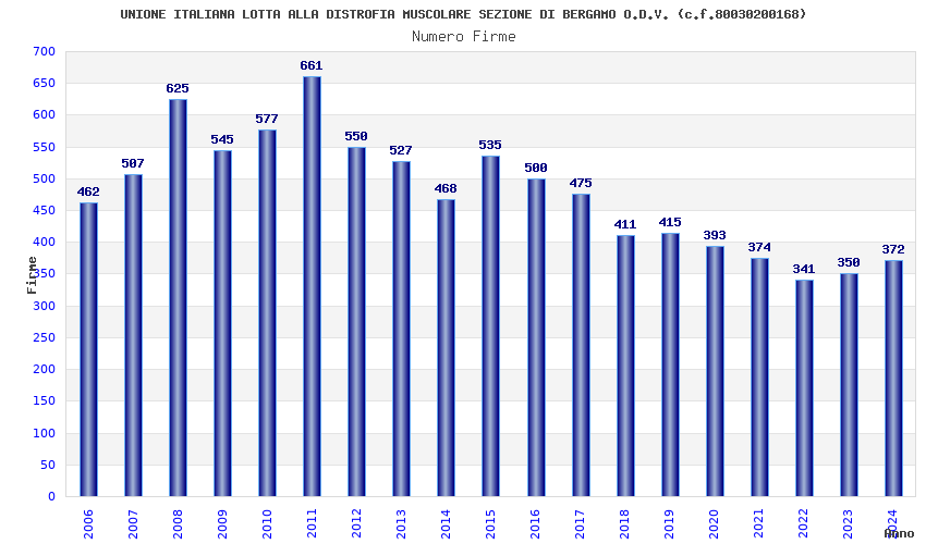| Anno | Firme | Importi | Media | Naz. | Reg. | Prov. | Comu. |