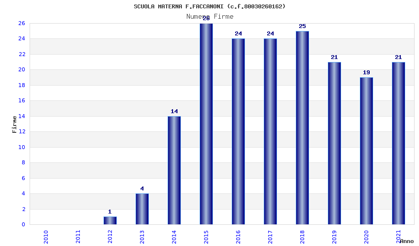 | Anno | Firme | Importi | Media | Naz. | Reg. | Prov. | Comu. |
