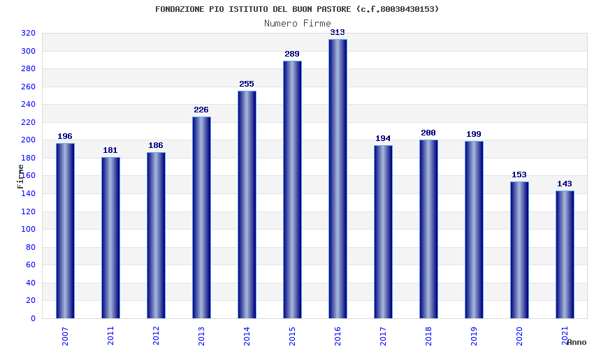 | Anno | Firme | Importi | Media | Naz. | Reg. | Prov. | Comu. |