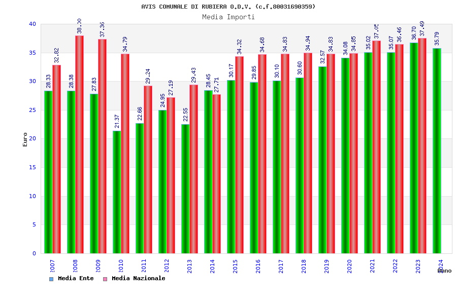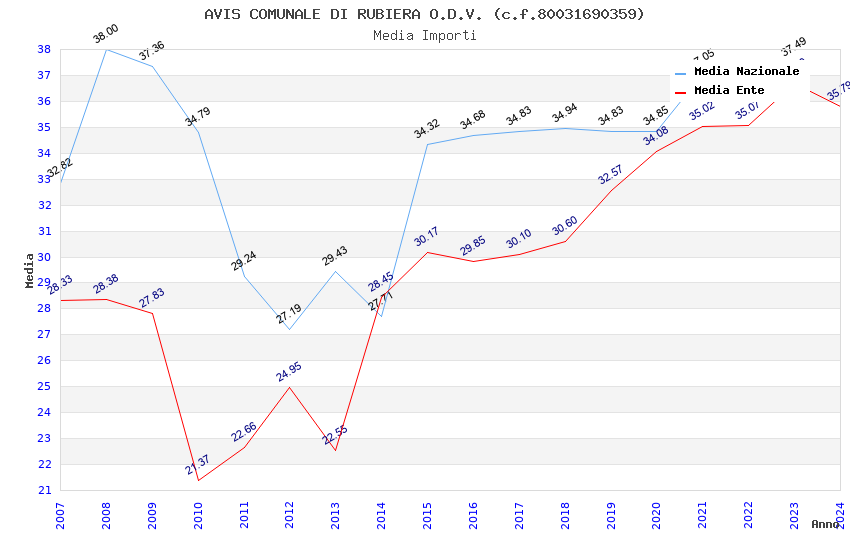 | Anno | Firme | Importi | Media | Naz. | Reg. | Prov. | Comu. |