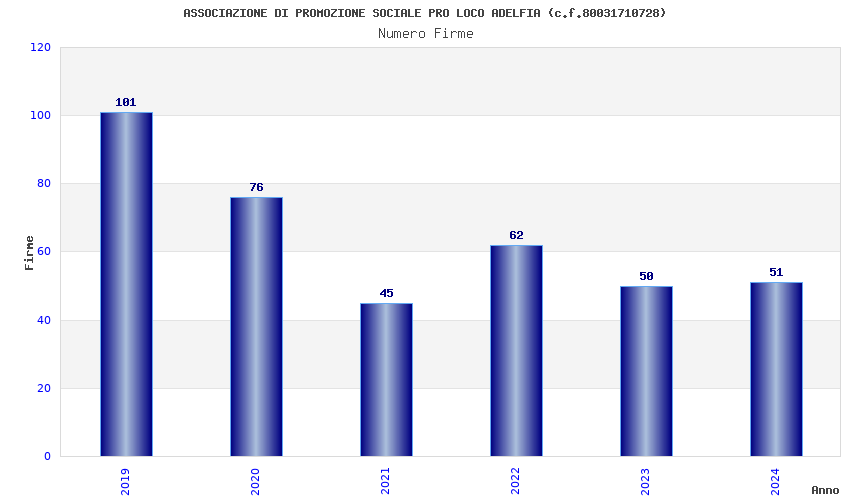 | Anno | Firme | Importi | Media | Naz. | Reg. | Prov. | Comu. |