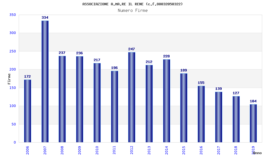 | Anno | Firme | Importi | Media | Naz. | Reg. | Prov. | Comu. |