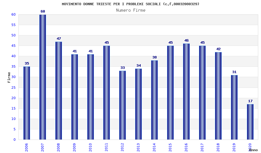 | Anno | Firme | Importi | Media | Naz. | Reg. | Prov. | Comu. |