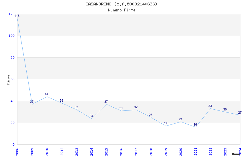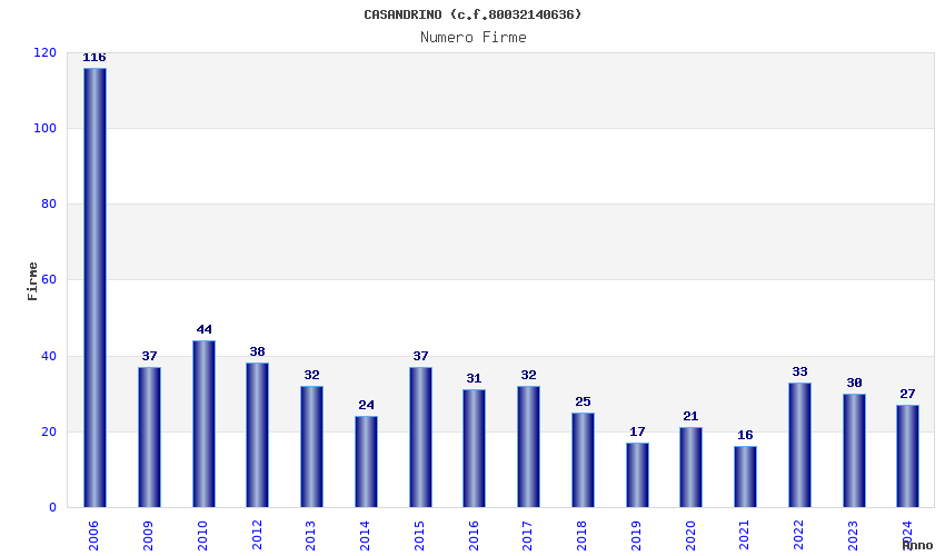 | Anno | Firme | Importi | Media | Naz. | Reg. | Prov. | Comu. |