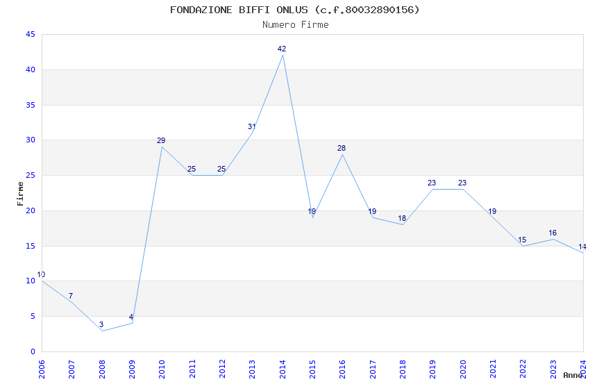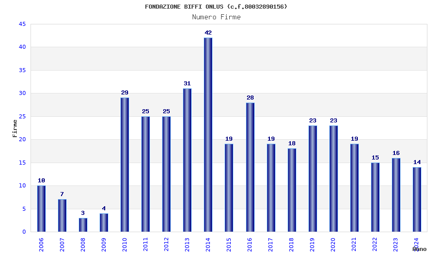 | Anno | Firme | Importi | Media | Naz. | Reg. | Prov. | Comu. |