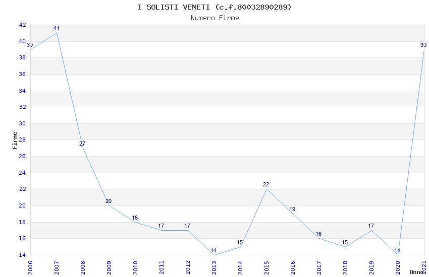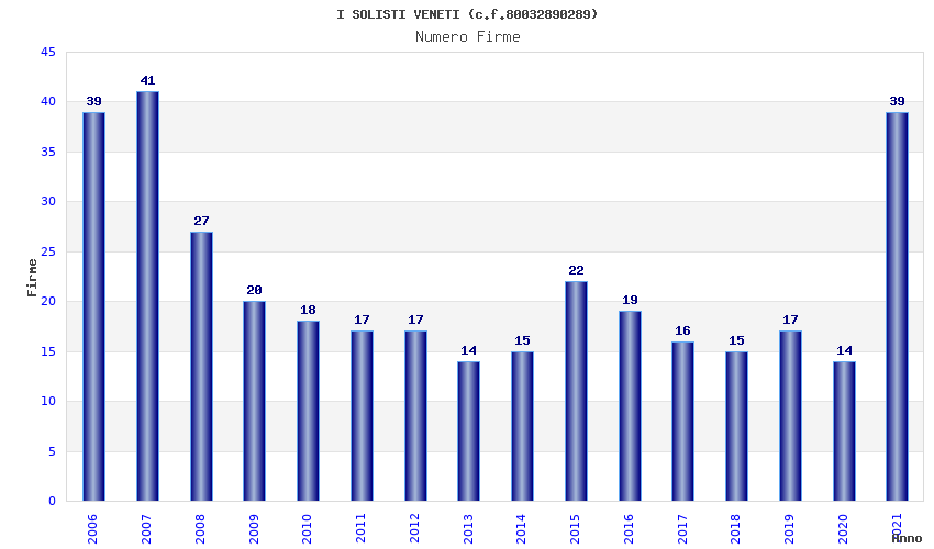| Anno | Firme | Importi | Media | Naz. | Reg. | Prov. | Comu. |