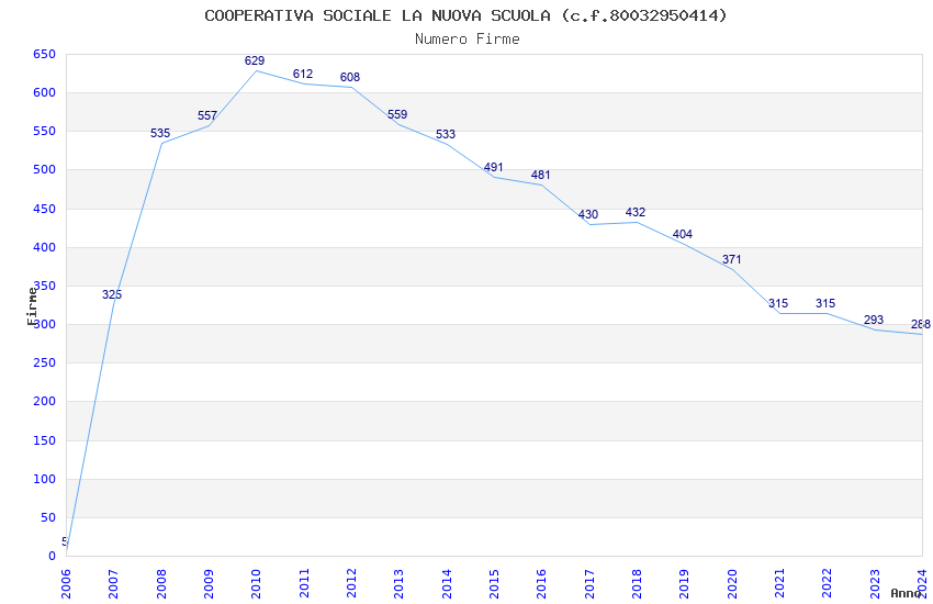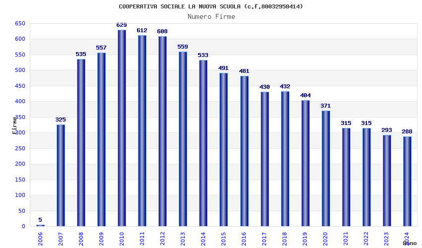 | Anno | Firme | Importi | Media | Naz. | Reg. | Prov. | Comu. |