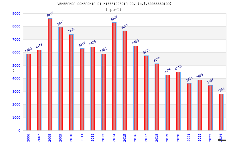 | Anno | Firme | Importi | Media | Naz. | Reg. | Prov. | Comu. |