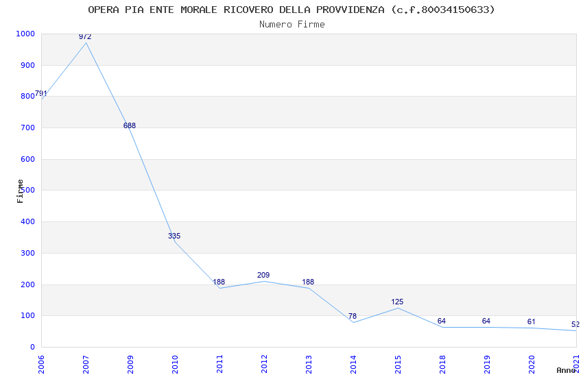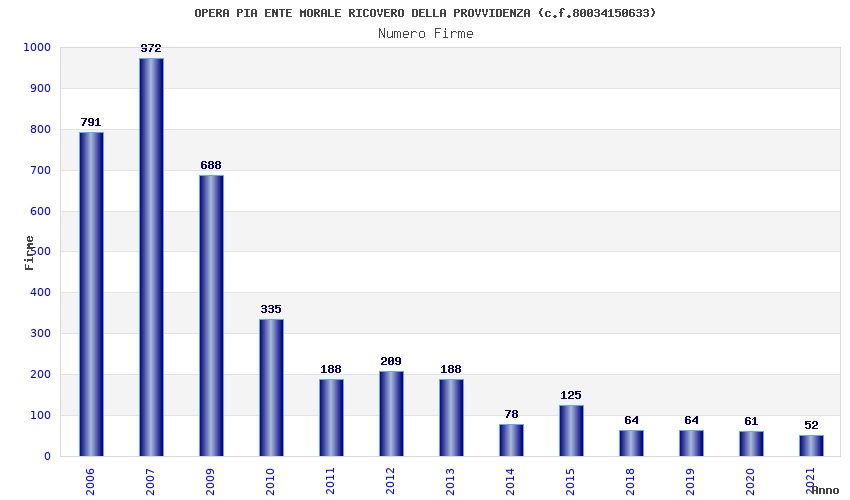 | Anno | Firme | Importi | Media | Naz. | Reg. | Prov. | Comu. |