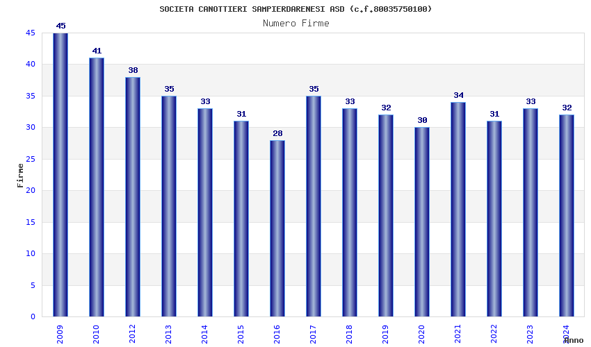 | Anno | Firme | Importi | Media | Naz. | Reg. | Prov. | Comu. |