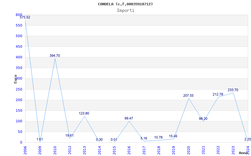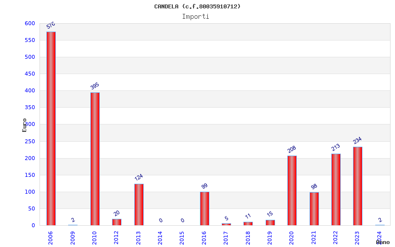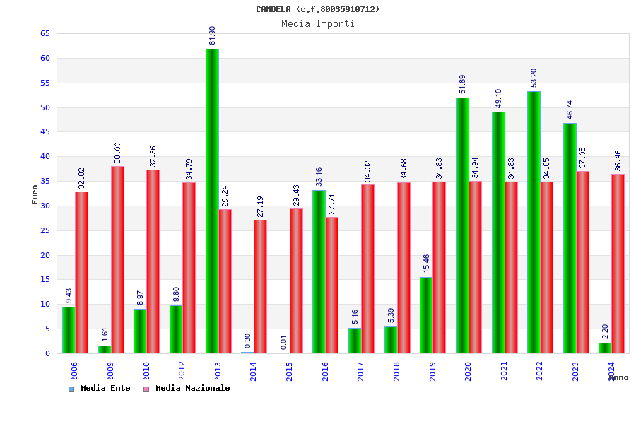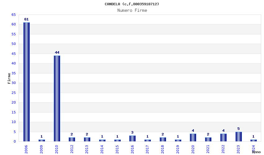 | Anno | Firme | Importi | Media | Naz. | Reg. | Prov. | Comu. |