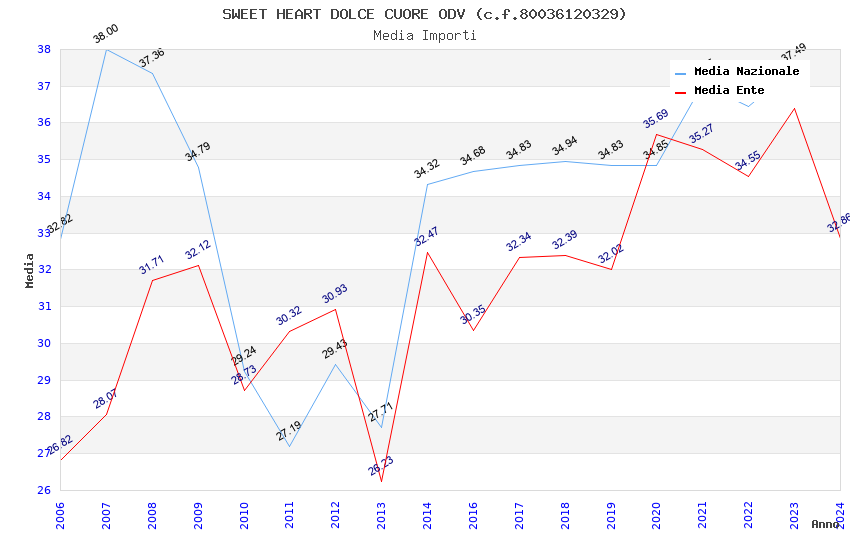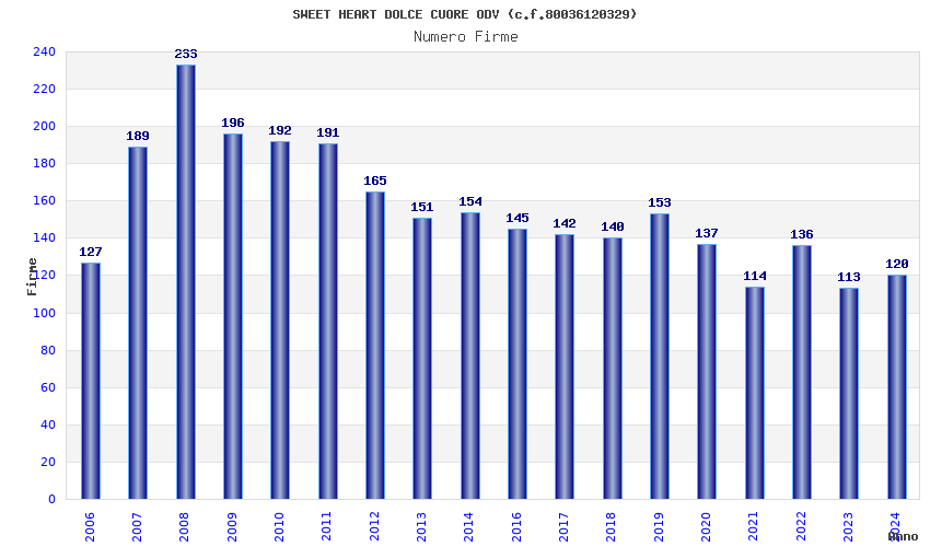| Anno | Firme | Importi | Media | Naz. | Reg. | Prov. | Comu. |