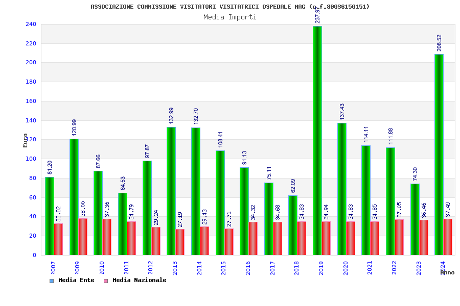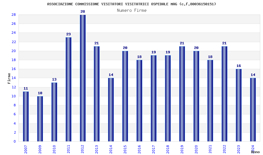 | Anno | Firme | Importi | Media | Naz. | Reg. | Prov. | Comu. |