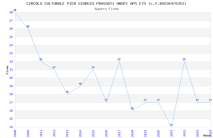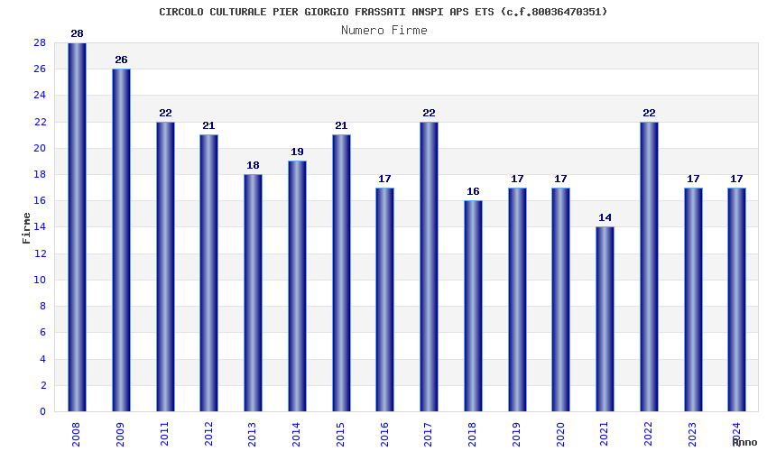 | 2017 | 22 | 3.461,32 | 157,33 | 15.526 | 1.360 | 184 | 14 |