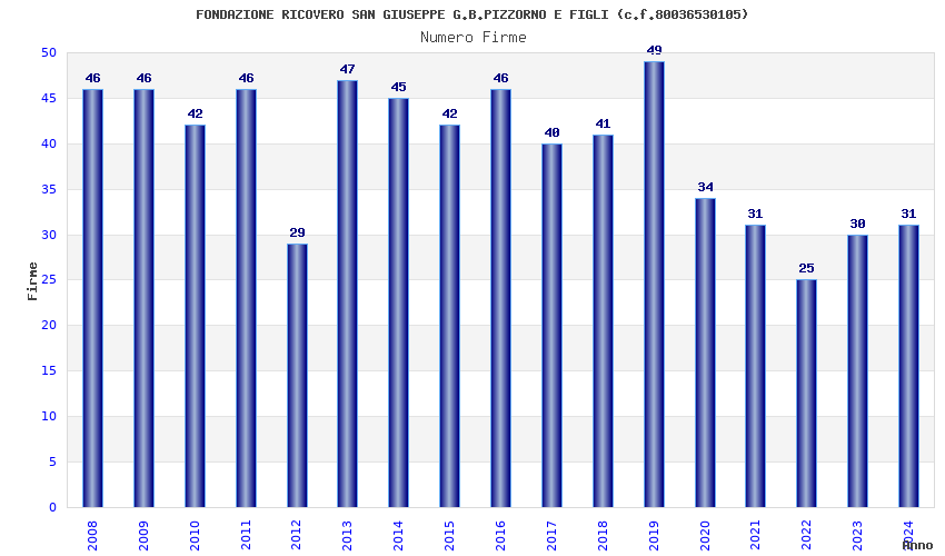| Anno | Firme | Importi | Media | Naz. | Reg. | Prov. | Comu. |