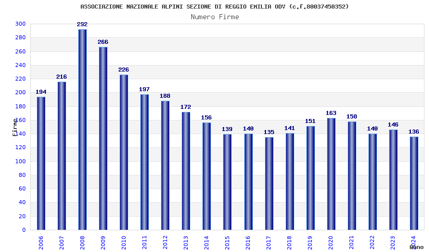 Anno Firme Importi Media Naz. Reg. Prov. Comu.