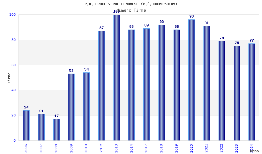 | 2024 | 77 | 2.139,03 | 27,78 | 22.874 | 567 | 358 | 268 |