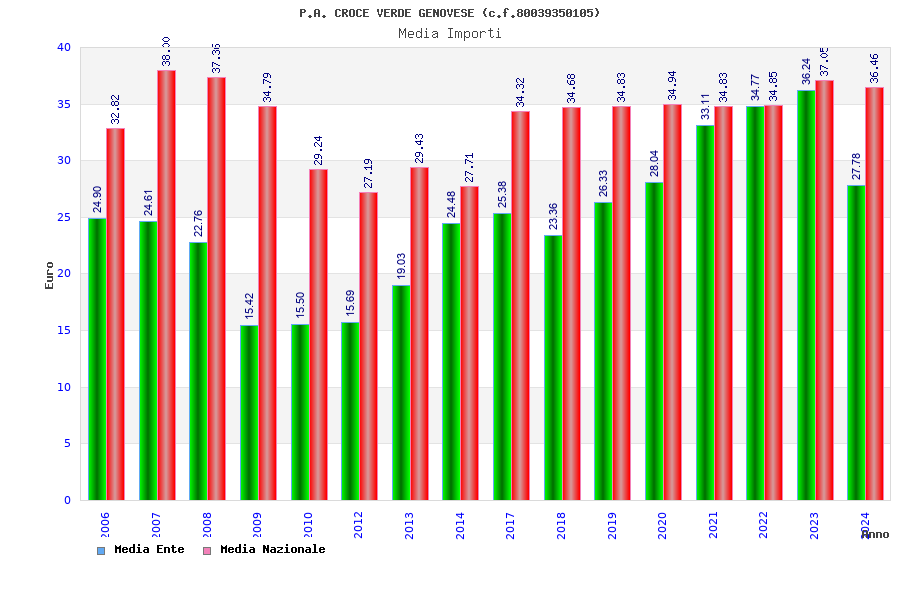 | Anno | Firme | Importi | Media | Naz. | Reg. | Prov. | Comu. |