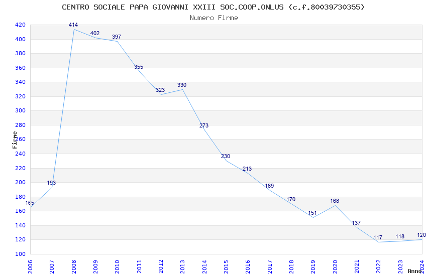 | 2008 | 414 | 32.298,99 | 78,02 | 1.116 | 98 | 13 | 7 |
