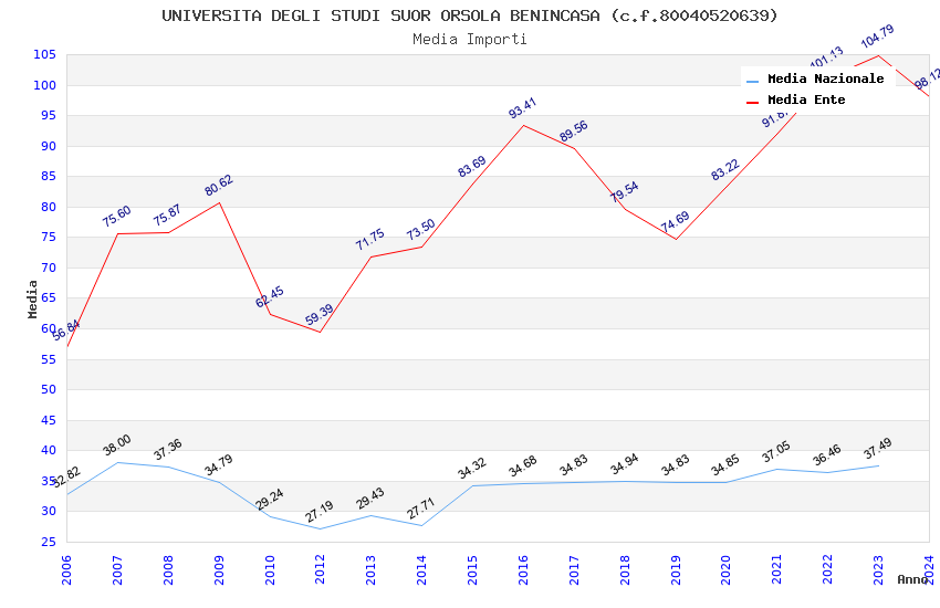 | Anno | Firme | Importi | Media | Naz. | Reg. | Prov. | Comu. |