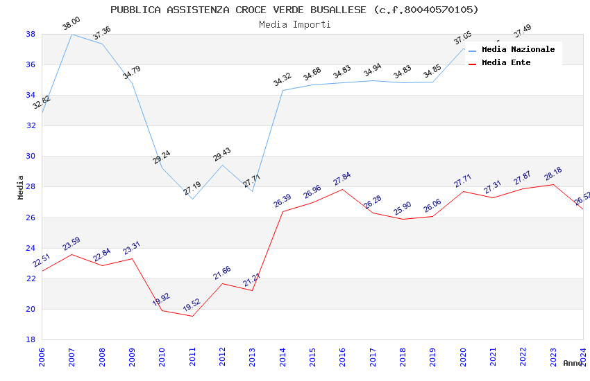 | Anno | Firme | Importi | Media | Naz. | Reg. | Prov. | Comu. |