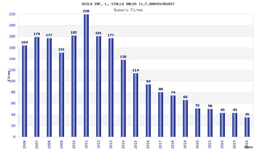 | Anno | Firme | Importi | Media | Naz. | Reg. | Prov. | Comu. |