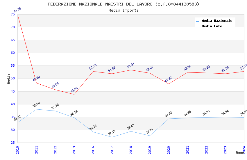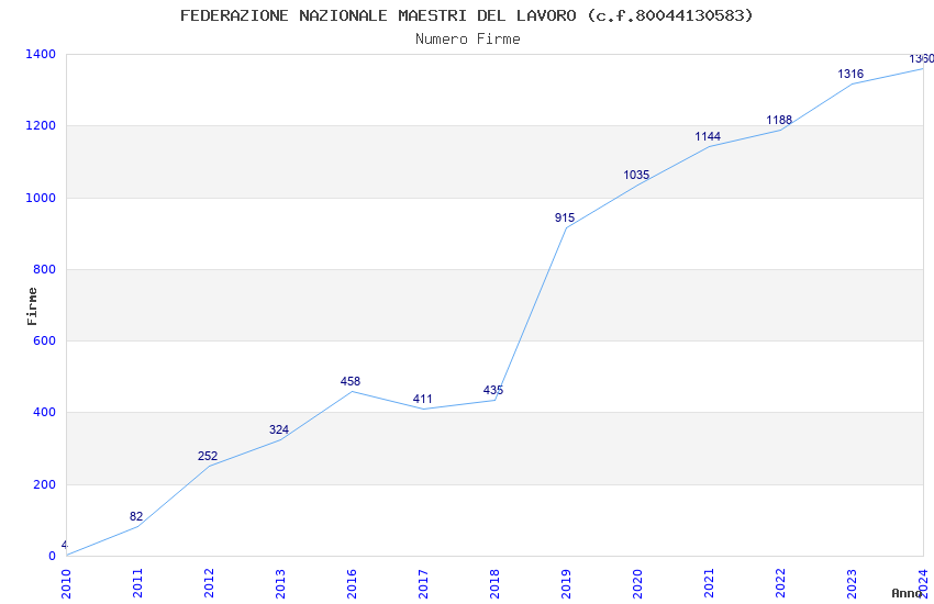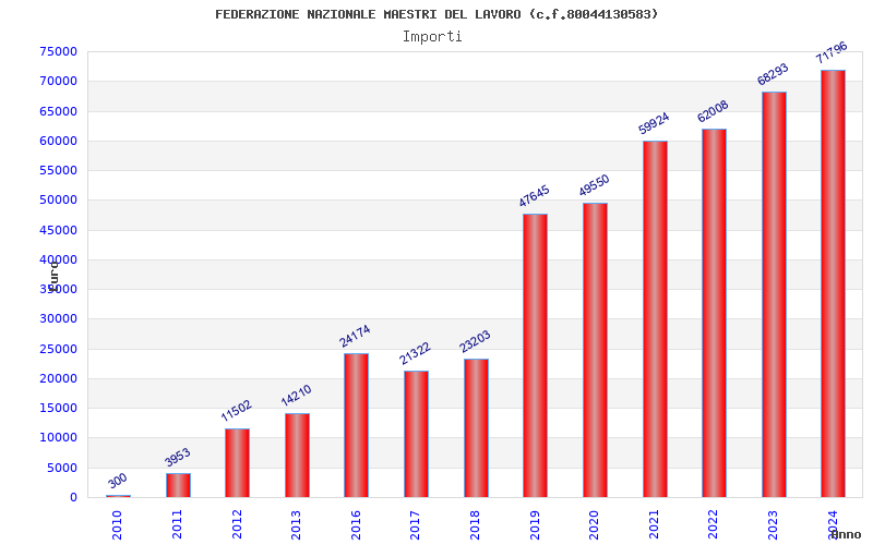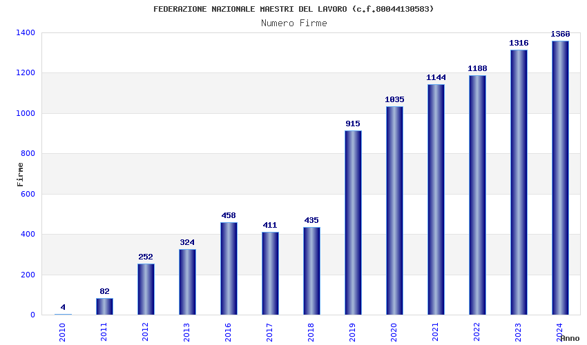 | Anno | Firme | Importi | Media | Naz. | Reg. | Prov. | Comu. |