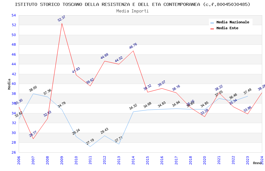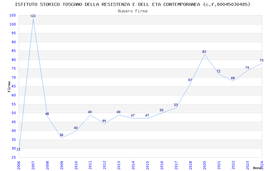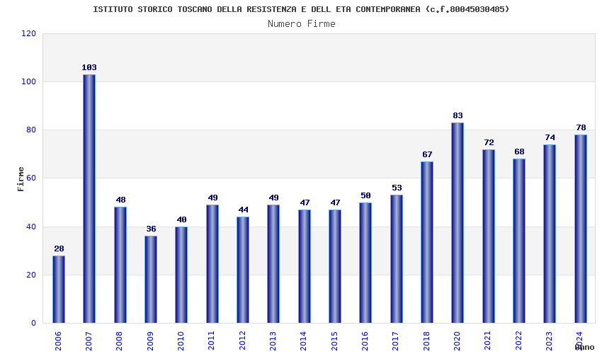 | Anno | Firme | Importi | Media | Naz. | Reg. | Prov. | Comu. |