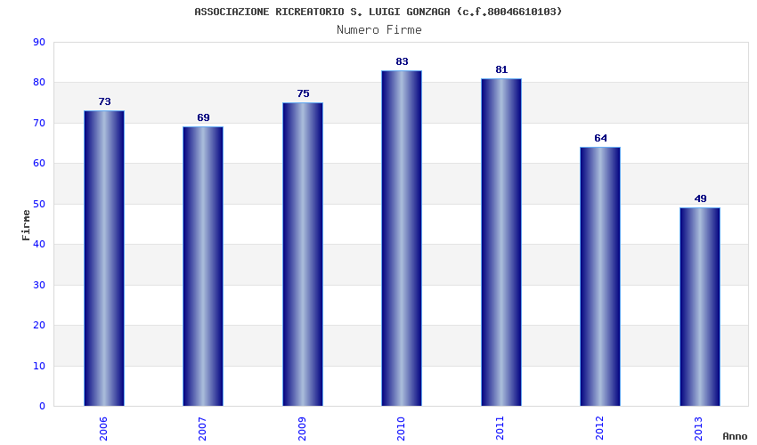 | Anno | Firme | Importi | Media | Naz. | Reg. | Prov. | Comu. |