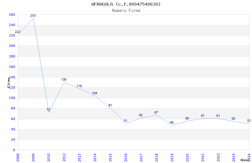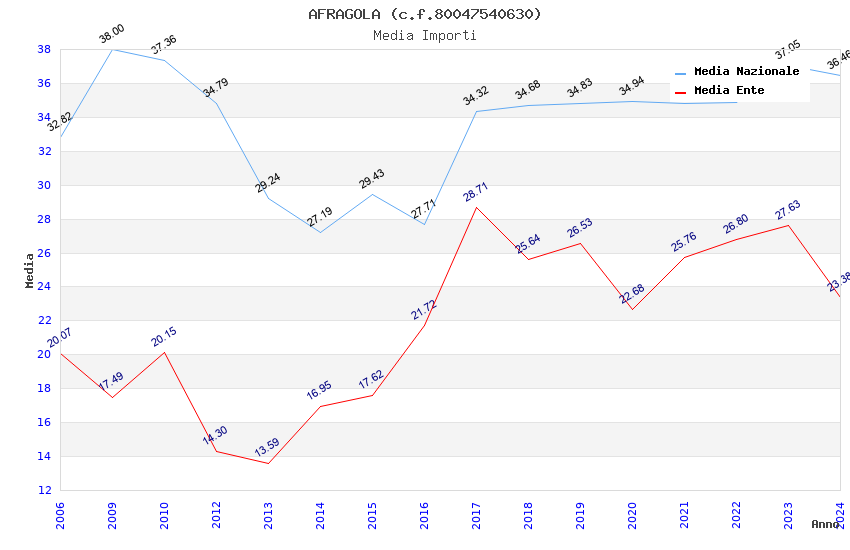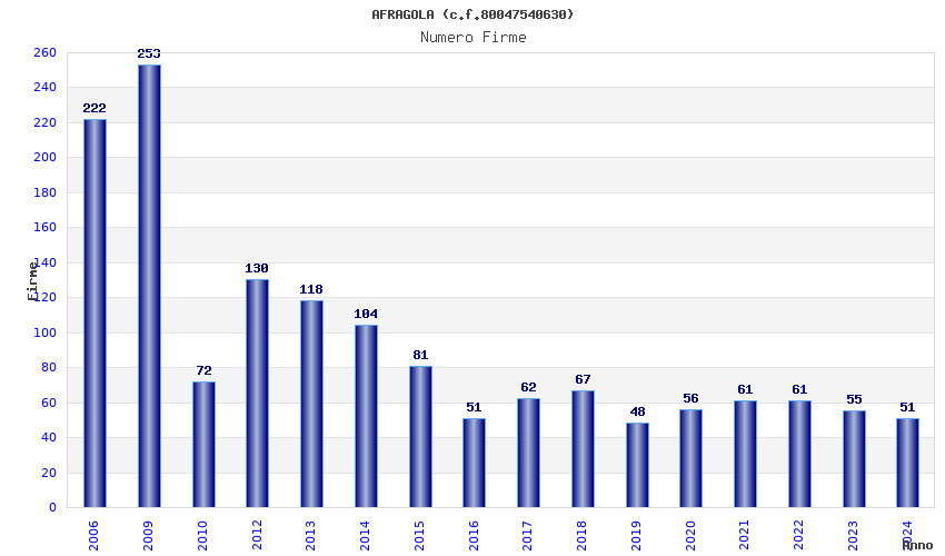 | Anno | Firme | Importi | Media | Naz. | Reg. | Prov. | Comu. |