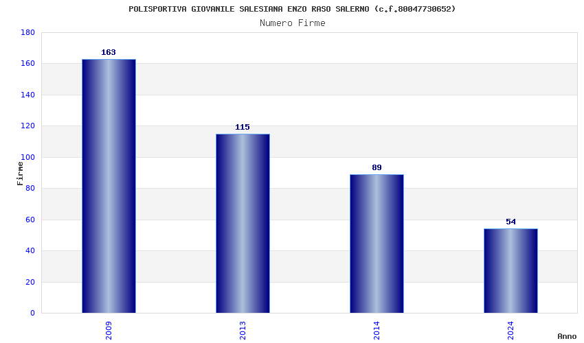 | Anno | Firme | Importi | Media | Naz. | Reg. | Prov. | Comu. |