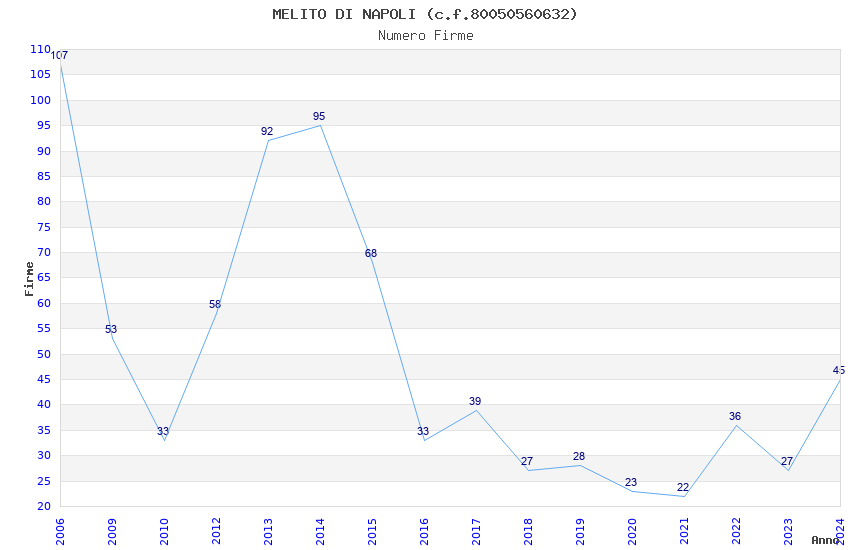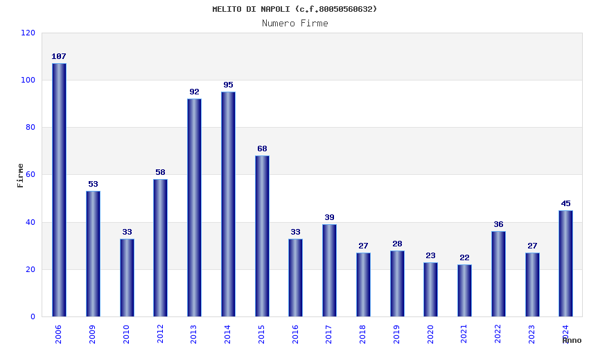 | Anno | Firme | Importi | Media | Naz. | Reg. | Prov. | Comu. |
