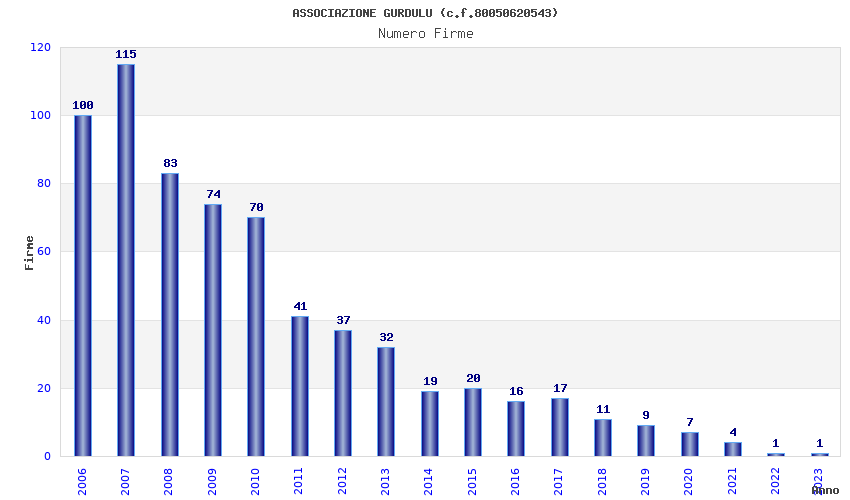 | Anno | Firme | Importi | Media | Naz. | Reg. | Prov. | Comu. |