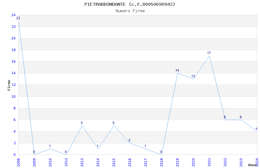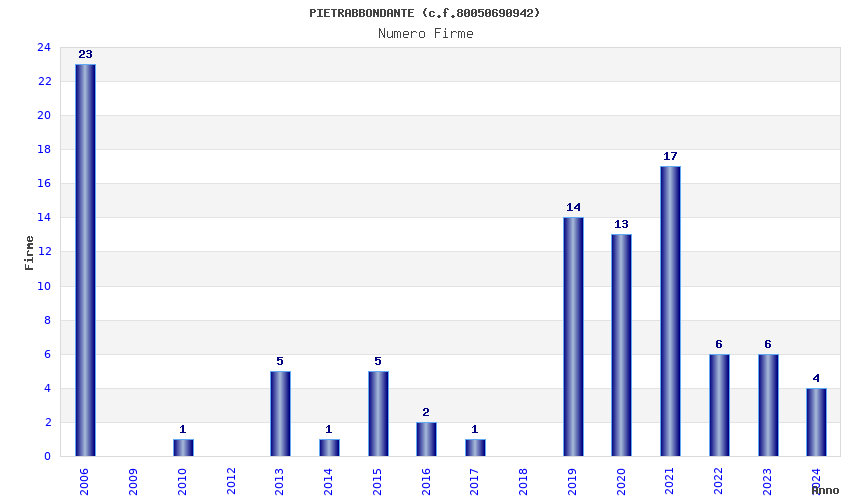 Anno Firme Importi Media Naz. Reg. Prov. Comu.