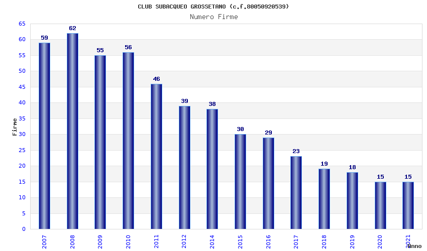 | 2021 | 15 | 774,63 | 51,64 | 40.758 | 2.541 | 131 | 62 |