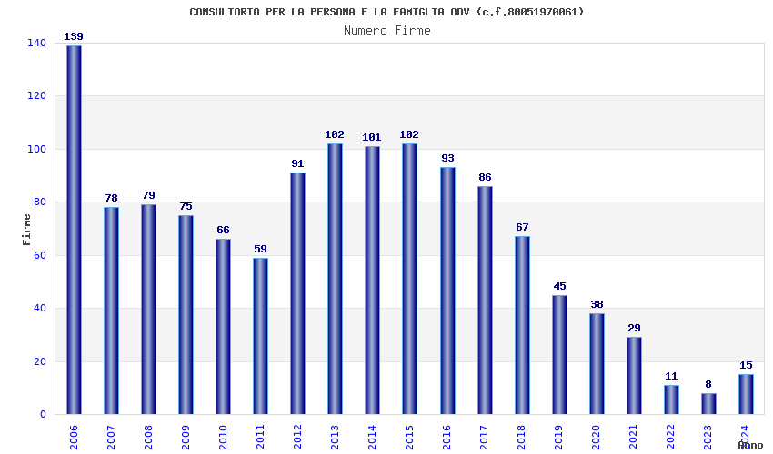 | Anno | Firme | Importi | Media | Naz. | Reg. | Prov. | Comu. |