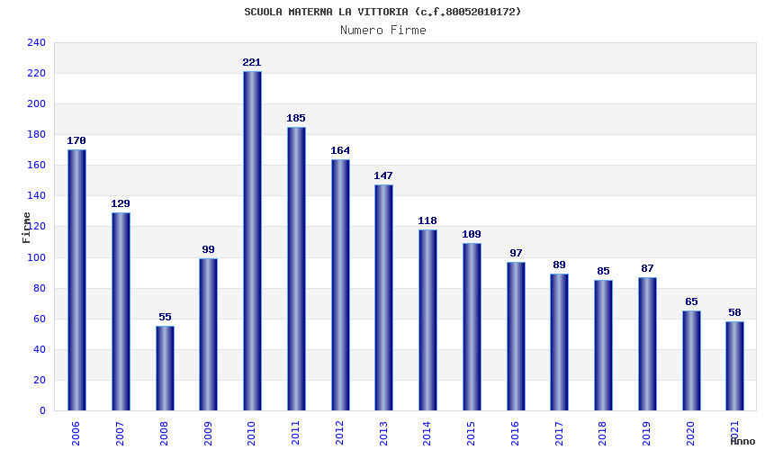 | Anno | Firme | Importi | Media | Naz. | Reg. | Prov. | Comu. |