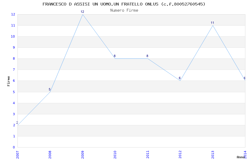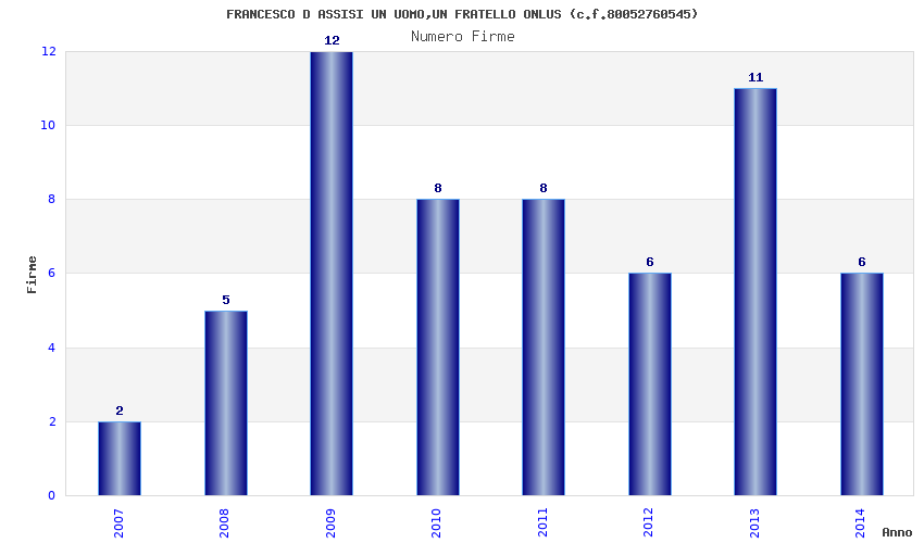 | Anno | Firme | Importi | Media | Naz. | Reg. | Prov. | Comu. |