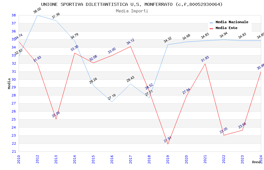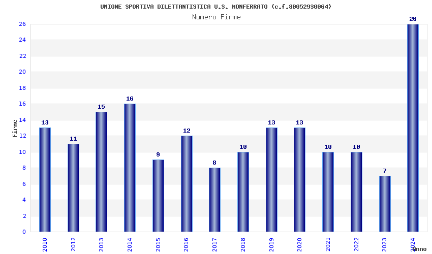 | Anno | Firme | Importi | Media | Naz. | Reg. | Prov. | Comu. |