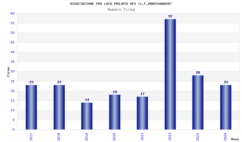 | Anno | Firme | Importi | Media | Naz. | Reg. | Prov. | Comu. |