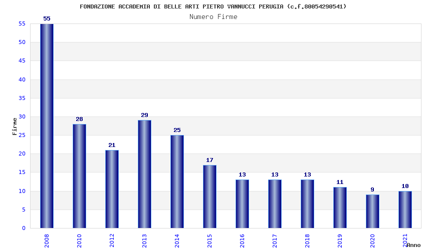 | Anno | Firme | Importi | Media | Naz. | Reg. | Prov. | Comu. |