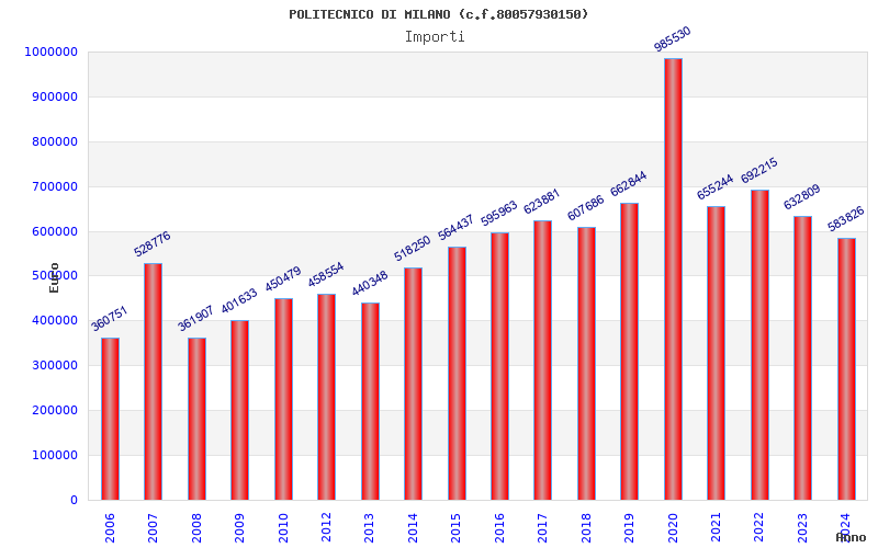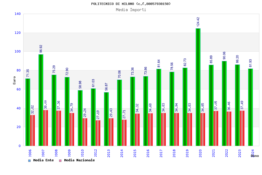 | Anno | Firme | Importi | Media | Naz. | Reg. | Prov. | Comu. |
