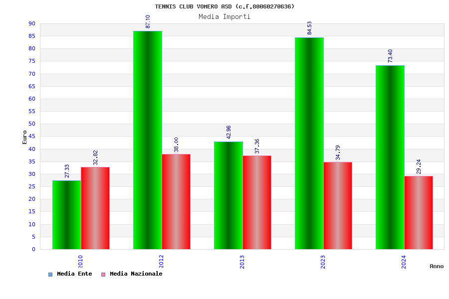 | Anno | Firme | Importi | Media | Naz. | Reg. | Prov. | Comu. |